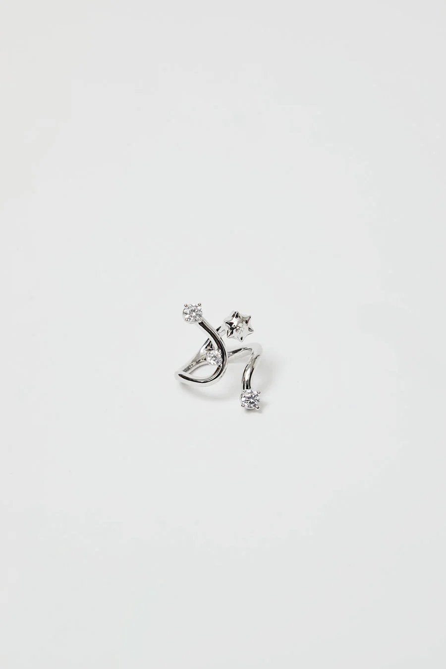 Sparkly, spindly ring in rhodium plated brass and cubic zirconia. Perfect for inspiring nostalgic reverie. Makes a great gift, too!