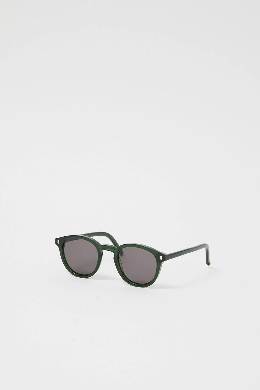 Soft rectangular grey tinted sunglasses set in a bottle green acetate frame. Super flattering everyday shape. Hand-crafted with anti-scratch and anti-reflective lenses.