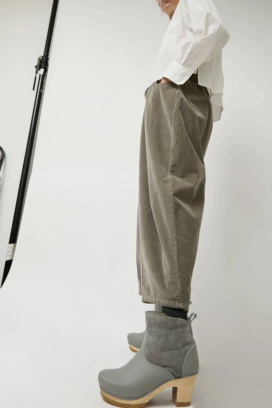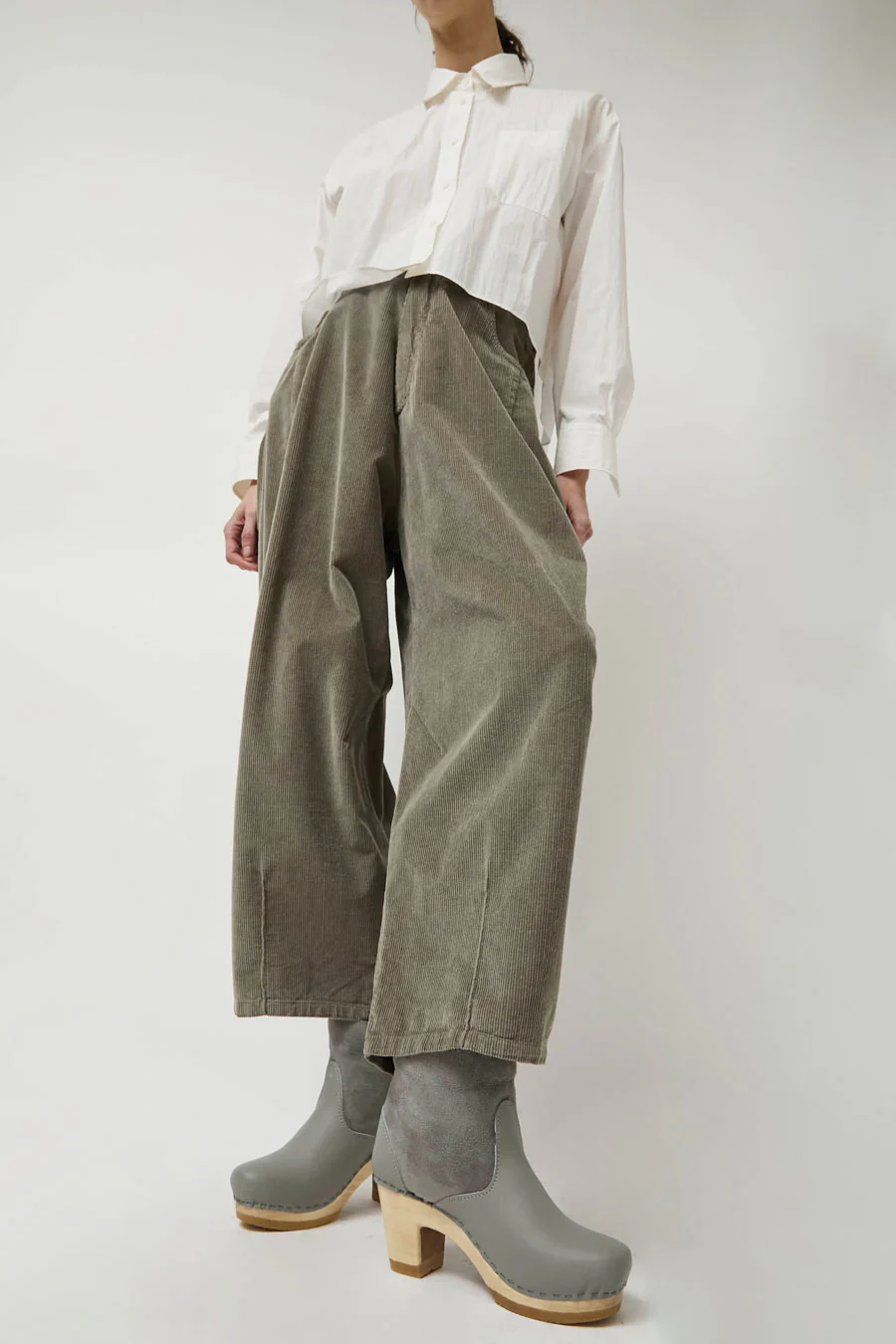No.6 5" Pull on Shearling Clog Boot on High Heel in Storm and Light Grey
