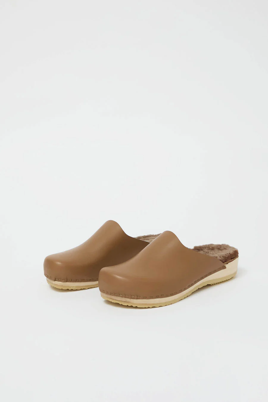 No.6 Contour Clog with Shearling on Flat Base in Khaki and Brown Brisa