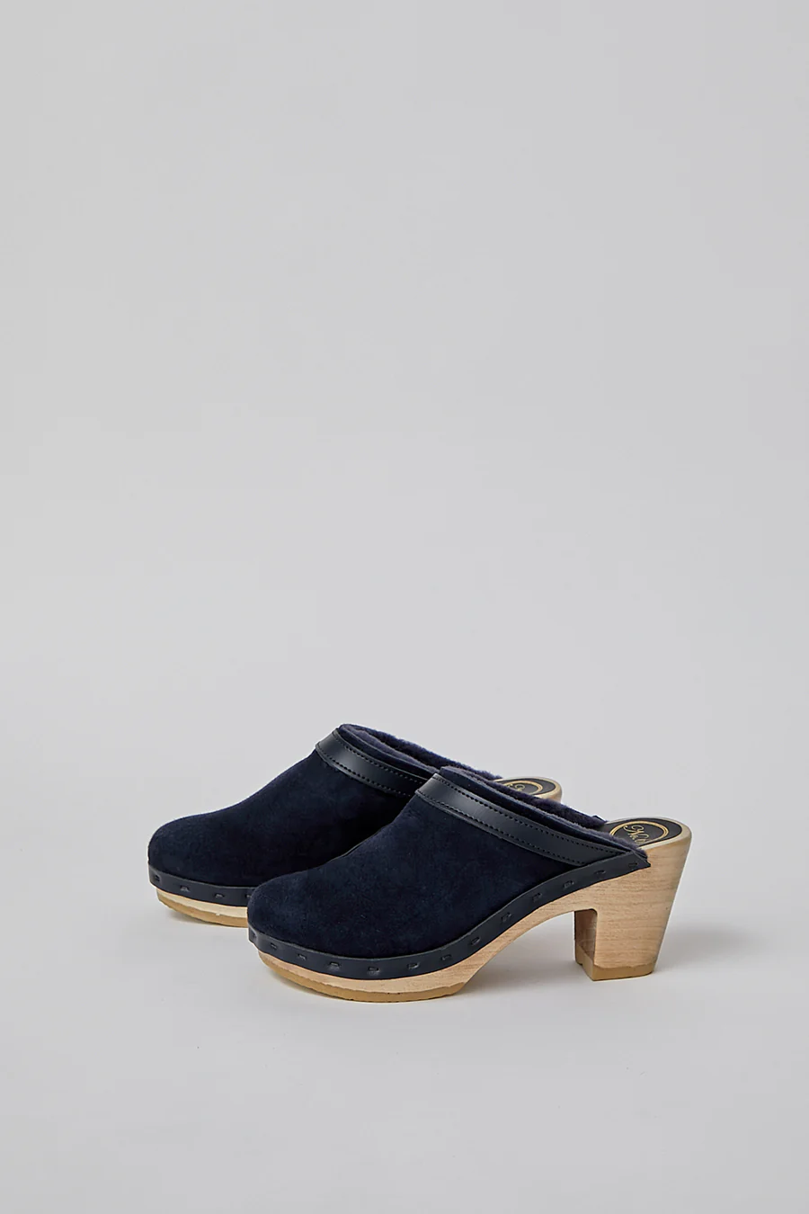 No.6 Dakota Shearling Clog on High Heel in Navy Suede and Night
