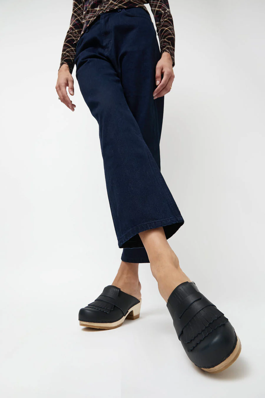 No.6 Kiltie Clog on Mid Heel in Indigo